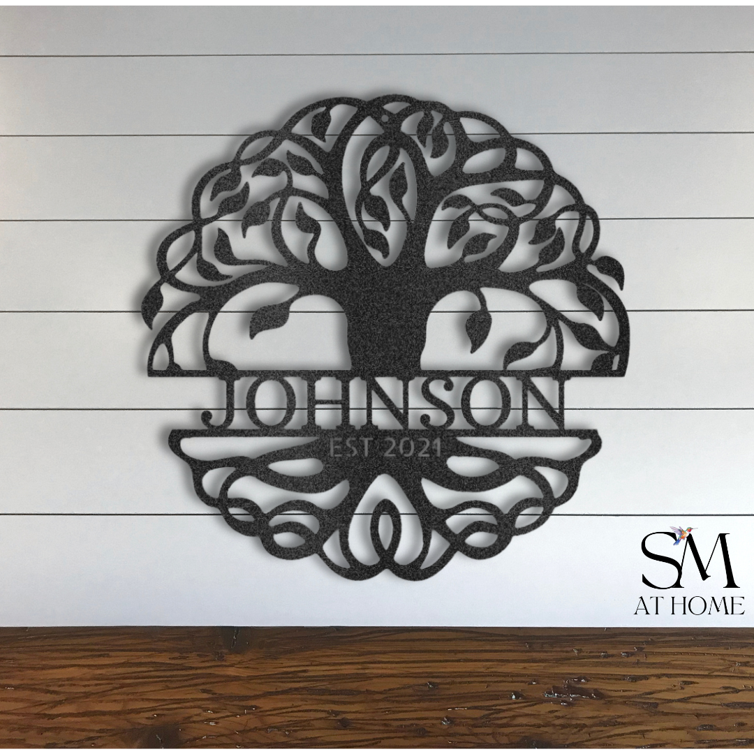 This Fancy Tree of Life Monogram steel sign is laser cut from mild steel and powder coated so you can hang this item indoors or outdoors. High quality, durable, and will not deteriorate!